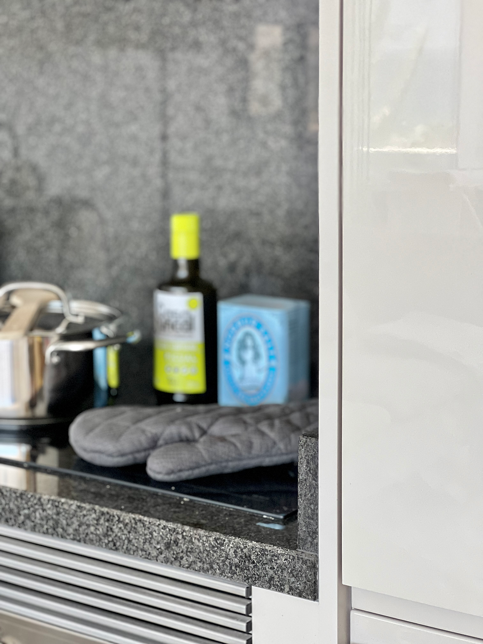 Salz, Pfeffer, Gewürze und Olivenöl. Alles vorhanden. Und solltest du etwas aufbrauchen, kaufe es nach. Der nächste Gast freut sich.